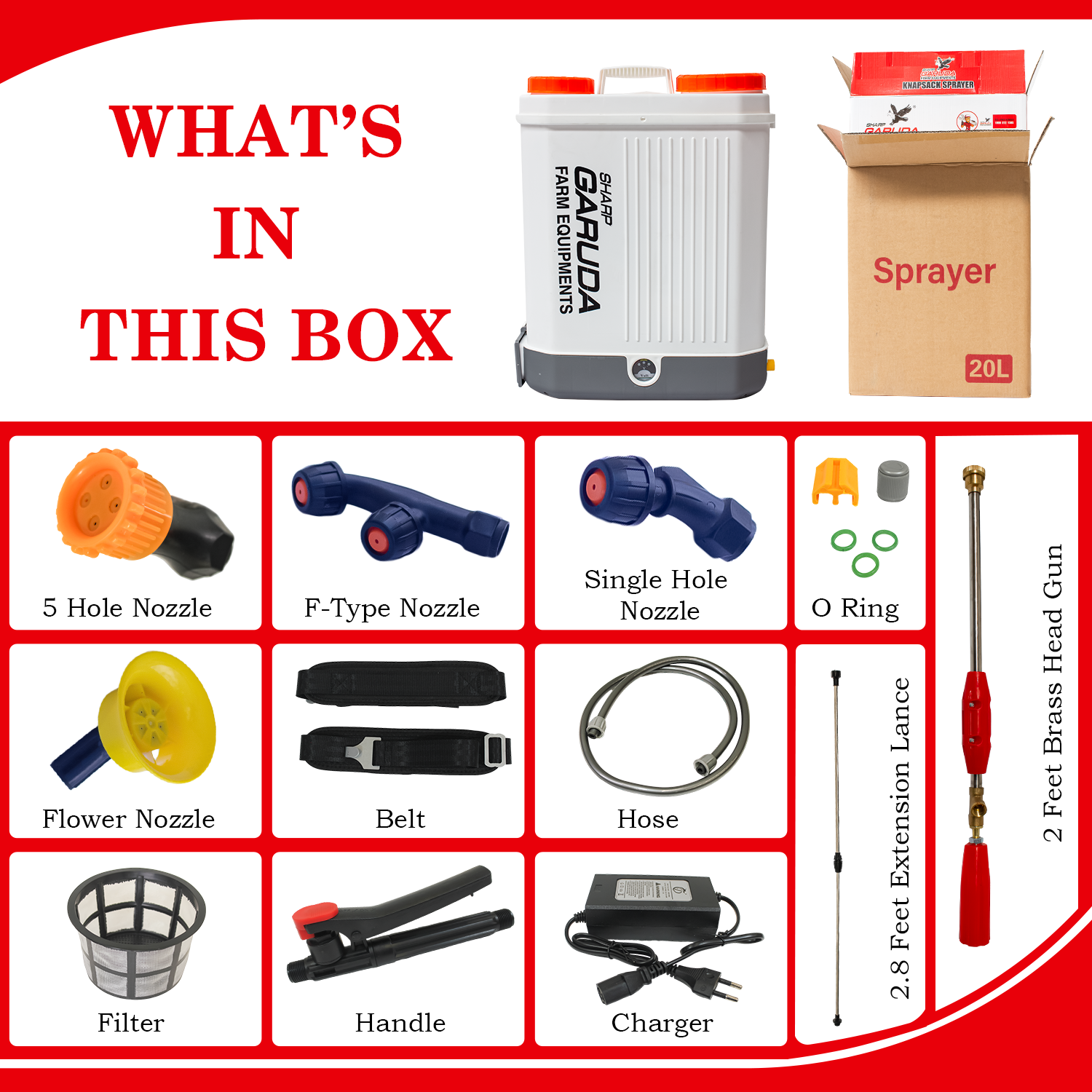 Experience the perfect blend of power, efficiency, and versatility with the Sharp Garuda 20L Double Pump Backpack Sprayer. Designed to meet the demands of both professionals and home users, it ensures reliable performance and excellent results every time. The sprayer’s high capacity, strong battery life, and durable construction make it a valuable addition to any toolkit. Whether you’re tackling large agricultural fields or small garden plots, the Sharp Garuda sprayer provides the reliability and functionality you need.